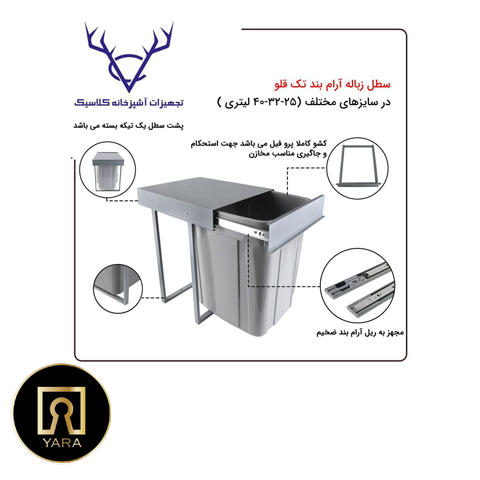 سطل زباله آرام بند تک قلو 25 لیتری نصب داخل کابینت – طراحی بی‌صدا و شیک از فروشگاه یارایراق